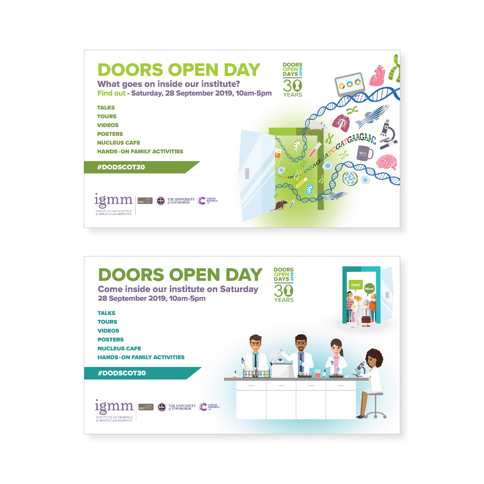 Brief: Create artwork for posters, banners and social media for Edinburgh Universities 2019s Doors Open Day.